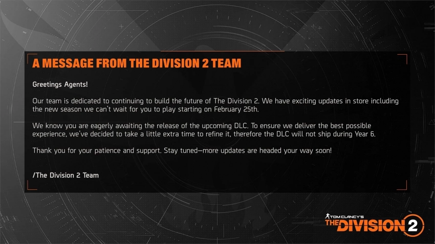 Сюжетное дополнение к The Division 2 отложили до седьмого года