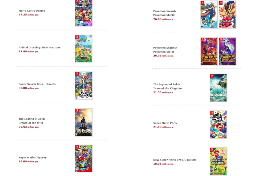 Что до игр Switch, то их тираж за упомянутый период составил 53,7 млн копий. Общие продажи превышают 1,359 млрд копий.