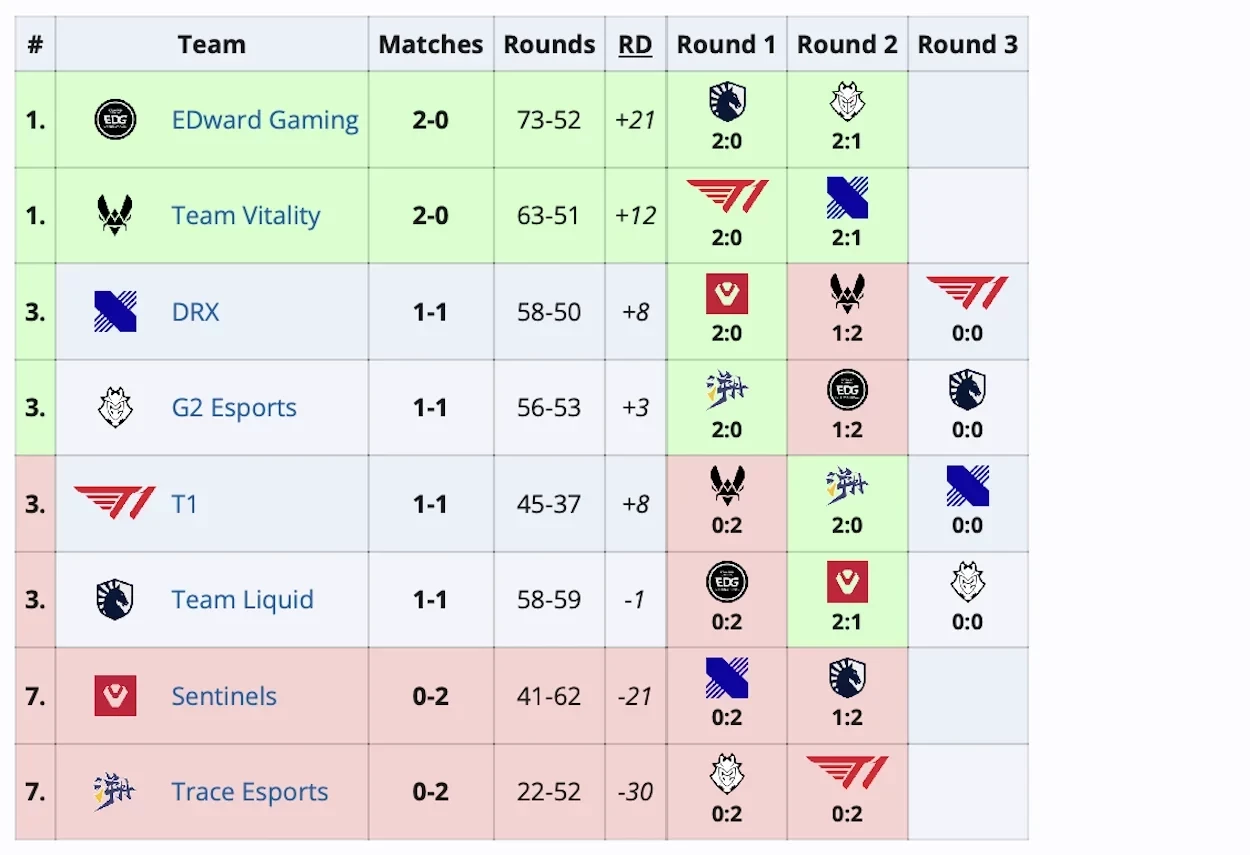 Team Vitality c Никитой «trexx» Чередниченко одолела DRX со счетом 2:1 и вышла в плей-офф турнира с двумя победами. А EDward Gaming вышла в нокаут-стадию после победы над G2.