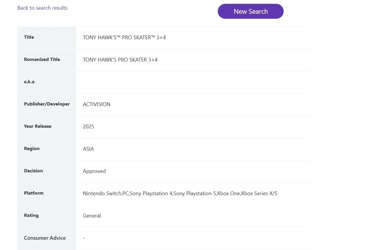 Tony Hawkʼs Pro Skater 3+4 выдали возрастной рейтинг в Сингапуре с релизом в 2025 году