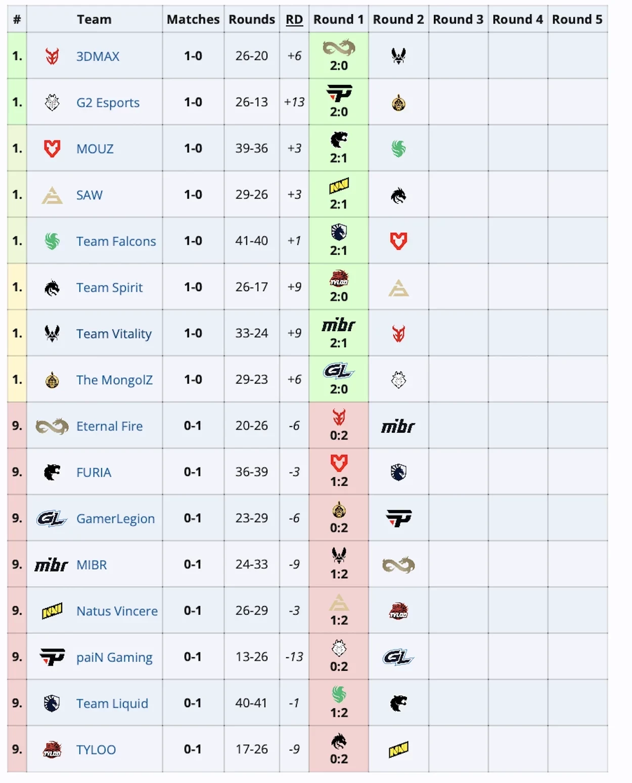 Eternal Fire уступила 3DMAX со счетом 0:2, несмотря на упорную борьбу. Natus Vincere проиграла SAW со счетом 1:2, что стало неожиданностью для многих фанатов. MOUZ легко переиграла FURIA со счетом 2:0, а G2 уверенно победила paiN с аналогичным счетом. Falcons одержала победу над Liquid со счетом 2:1, проявив высокий уровень игры и стойкость.