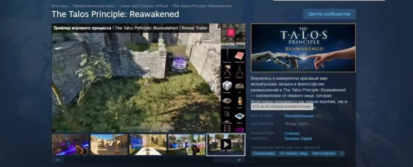 В России The Talos Principle: Reawakened продают за 1300 руб.