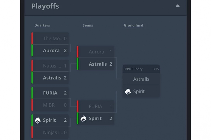 Отметим, что для Spirit это первый финал с февраля, когда команда заняла второе место на IEM Katowice. Astralis, победившая Aurora в полуфинале (2:1), вышла в финал топ-турнира впервые с января 2021 года.