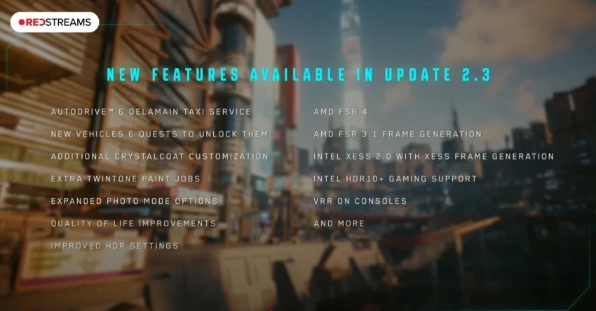 Обновление 2.3 для Cyberpunk 2077 с новыми тачками выйдет 17 июля (но не на Switch 2)