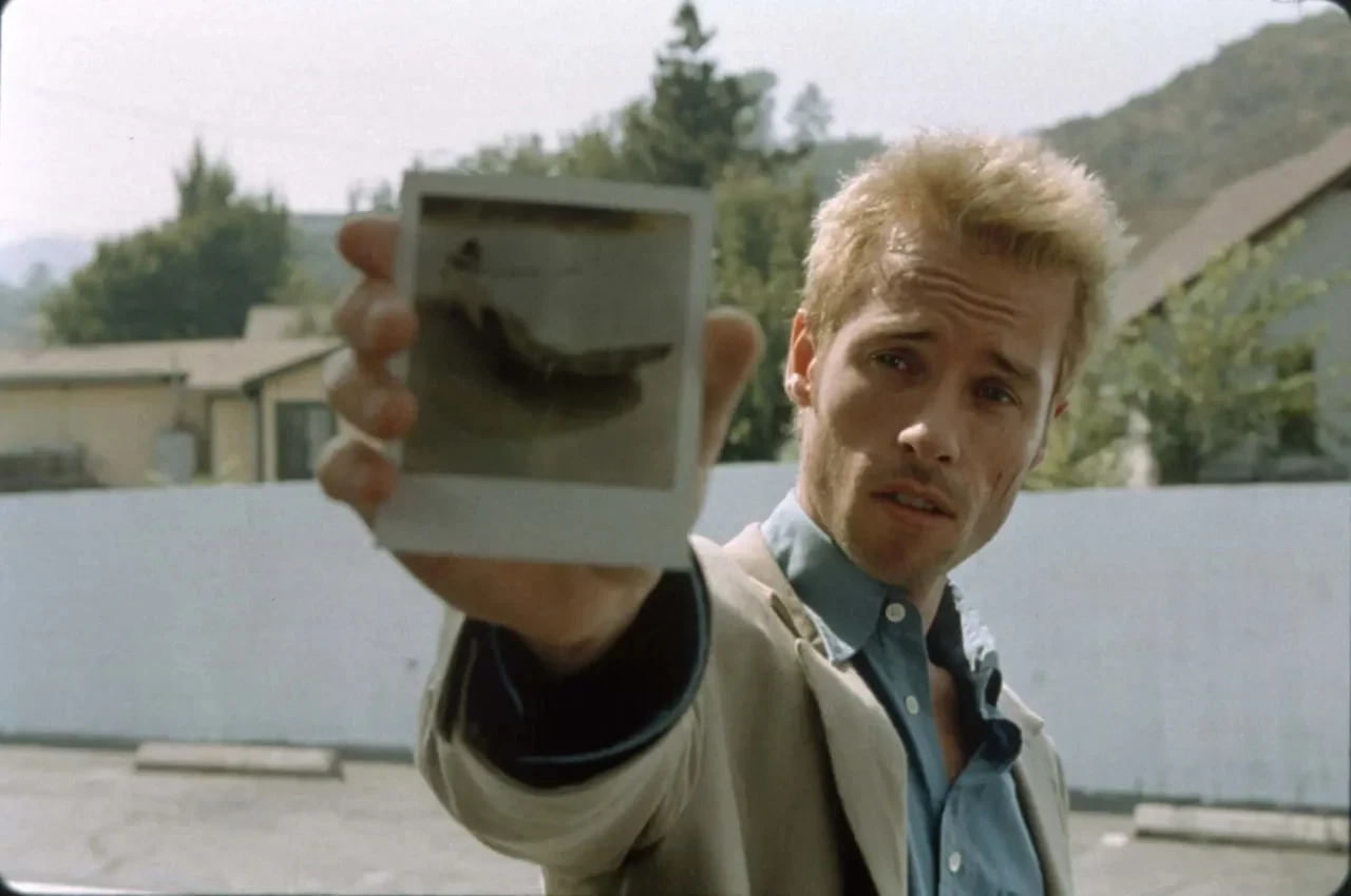 Поэтому он постоянно отправляет себе записки и разные фото, да к тому же делает всевозможные тату — чтобы сохранить важную информацию. Но он не может верить никому, включая и пару своих союзников.