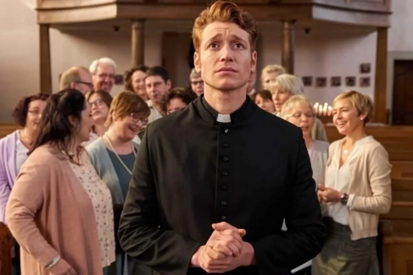 Скрываясь от полиции, мелкий мошенник Майк Шефер не находит ничего лучше, как переодеться в священника. По иронии судьбы он оказывается в церкви крохотного немецкого городка, куда как раз должен прибыть новый святой отец. Подмены никто чудесным образом не замечает, и Майк обретает спасение во всех смыслах: ускользает от полисменов и постепенно проникается любовью к службе в церкви. Разумеется, проблемы находят перевоспитавшегося афериста, но Майк изящно решает их: не иначе, с Божьей помощью.