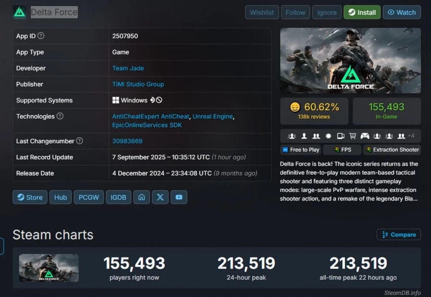 Главные новости » Все об играх » Delta Force установила новый рекорд по пиковому онлайну в Steam