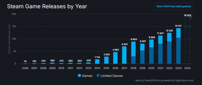 Главные новости » Все об играх » За 2024 год в Steam выпустили более 18 тысяч игр — это новый рекорд для платформы Valve
