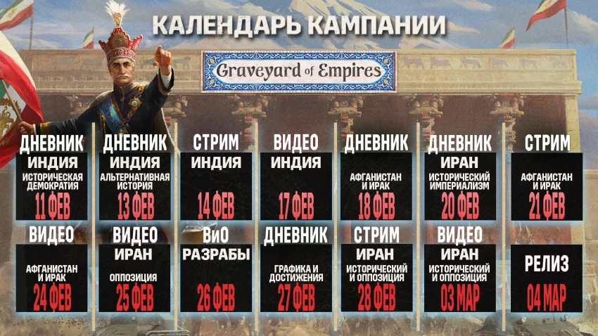 Календарь ближайших дневников разработчиков и трансляций, посвящённых Graveyard of Empires