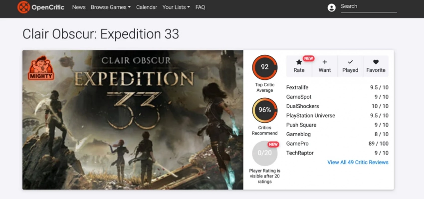 На данный момент ролевое приключение заработало 92 балл на Metacritic на основе 36 рецензий (версия для PS5). На OpenCritic в среднем у неё 92 балла, а рекомендуют новинку 96% авторов.